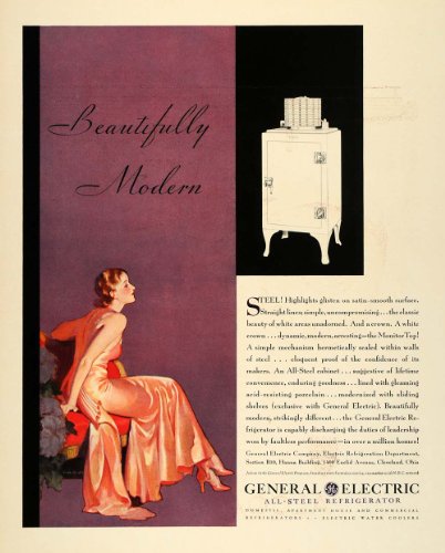 This is a beautiful original 1931 color print ad for General Electric All-Steel Refrigerator cabinet. Read more...