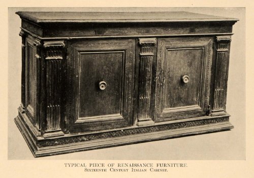 This is an original 1918 halftone print showing a typical piece of Renaissance furniture, a sixteenth century Italian cabinet. Read more...